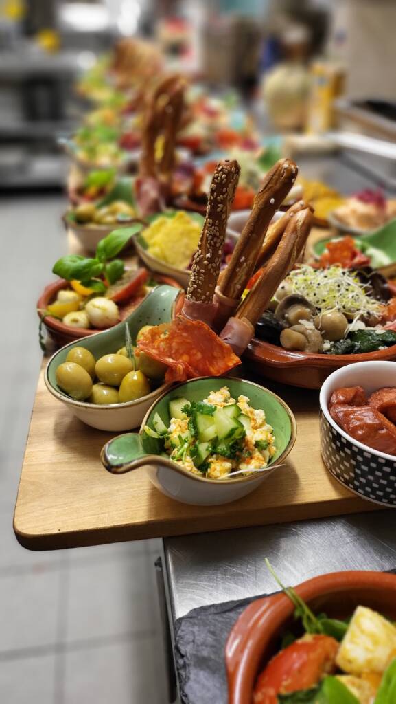 Unsere Speisenfolge wird individuell für Sie zusammengestellt und verbindet unterschiedliche kulinarische Einflüsse zu einem stimmigen Gesamtkonzept. Das Repertoire reicht von internationalen Klassikern wie Havelzander mit Chorizo-Kruste über mediterrane Vorspeisen bis hin zu authentischen maghrebinischen Spezialitäten. Vegane, vegetarische und allergikerfreundliche Optionen sind bei uns kein nachträglicher Zusatz, sondern werden von Beginn an nahtlos und in gleichwertiger Qualität in das Menü integriert.